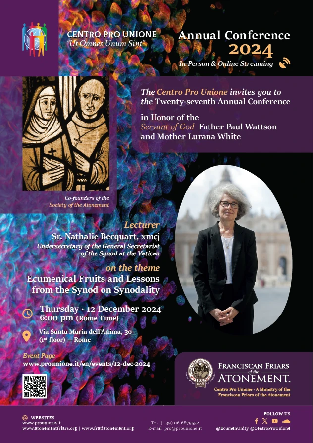 Il Centro Pro Unione è sorto grazie al carisma ecumenico dei Frati Francescani dell’Atonement, un ramo francescano fondato dal Servo di Dio padre Paul Wattson e madre Lurana White alla fine del XIX secolo.